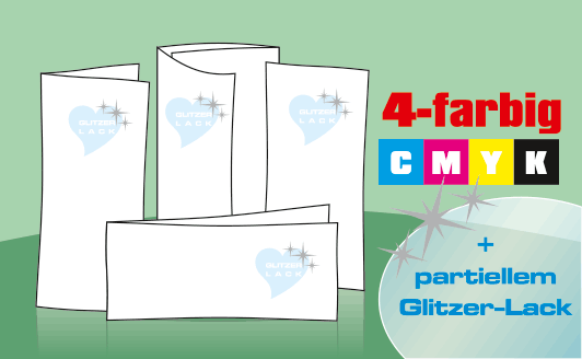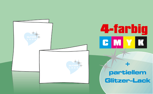 Anlässe für Gruß- und Einladungskarten gibt es immer. Egal ob Sie Karten zur Geburt oder Taufe brauchen oder auf der Suche nach Hochzeitskarten sind, Geburtstagsgrüße, Weihnachtskarten oder Neujahrsgrüße verschicken wollen. Mit einer hochwertigen Einladungskarte inkl. partiellem Glitzer-Lack liegen Sie immer goldrichtig. Gedruckt wird in Offsetqualität auf 300g Bilderdruckpapier oder auf unserem Chromeffekt-Hochglanz Papier Silber, als ganz besonderes Highlight.