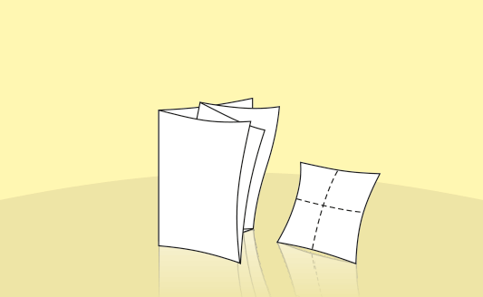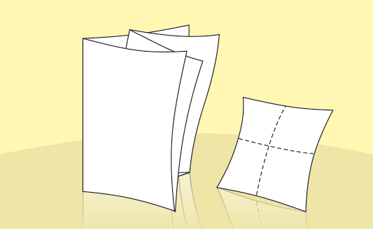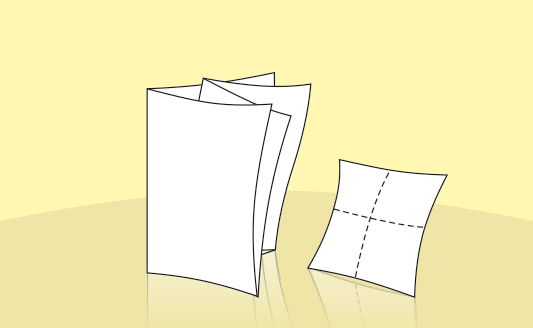 Der Begriff Kreuzbruchfalz erklärt sich dadurch, dass nach dem Falzen ein Kreuz auf dem geöffneten Falzbogen sichtbar ist. Dieses entsteht, indem der Bogen mittig gefalzt wird und jede Falzung um 90° versetzt ist. Die zwei Brüche ergeben bei Ihren Kreuzbruchfalz-Flyern acht bedruckbare Seiten. Neben dem großzügigen Platzangebot punkten diese Handzettel außerdem damit, dass sie die Neugier der Empfänger auf den Inhalt der Folder wecken.